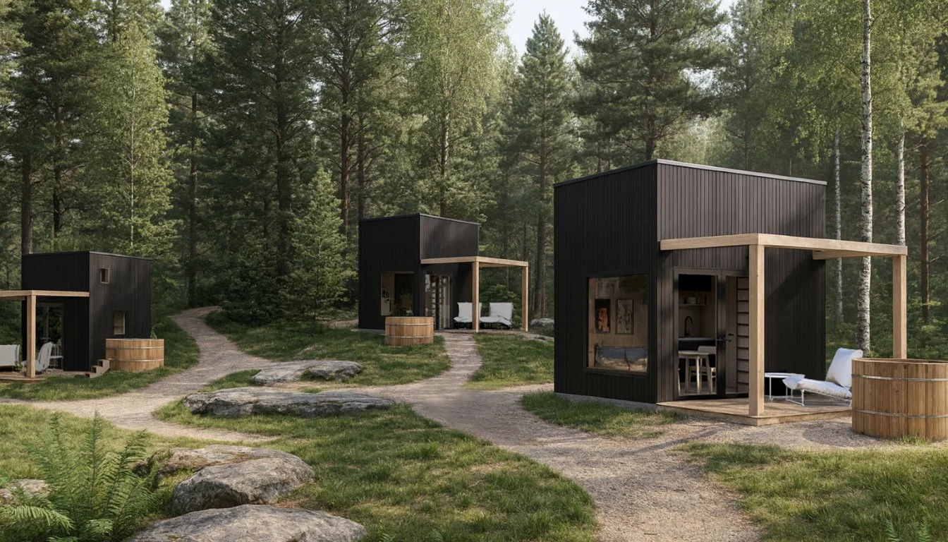 Finns även med “off-grid”-alternativ för ett självförsörjande, hållbart boende som levereras med solpaneler och förbränningstoalett.