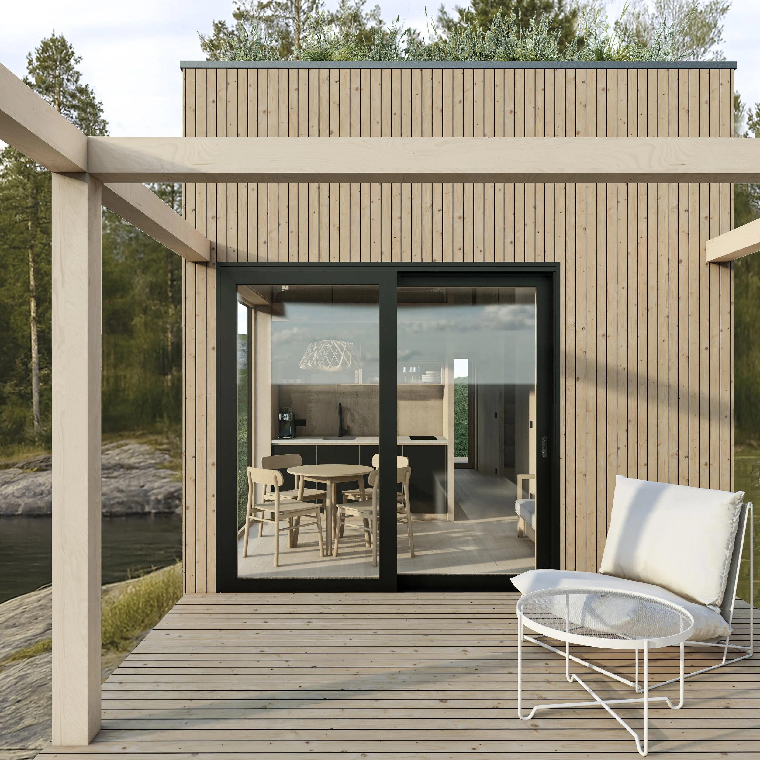 Huset levereras komplett med förbränningstoalett, solceller med batterilagring, samt system för regnvatteninsamling och rening. Allt är smart integrerat och utformat för att fungera året runt, oavsett var i Sverige du befinner dig.
